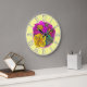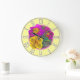 Delicate floral purple and yellow fine art printed botanical wall clock is perfect to embellish an interior room and to give it a ping of spring colour. Add a little tranquillity to a bedroom, lounge, or sun room with this original fine art wall clock.