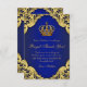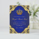 Prince birthday party thank you cards with royal blue and gold crown on a royal blue and gold swirl background. This beautiful flat style royal blue and gold prince birthday party thank you card is easily customized by adding your message. This is a printed design with no real jewels, glitter, etc.