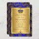 Royal blue & gold Baptism Invitation. Elegant regal jewel crown & gold damask. Customize with your own details. Please note all flat images! they do not have real jewels!
