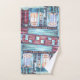 It was advertised as NAVY blue and the color sent was greenish blue. I am disappointed in this product. Quality and printing are great as are all my other orders. As you can see in picture the tea towel on right is perfect, hand towel not so much! Print was awesome and just as ordered