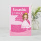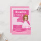 Cute girls 3rd birthday invitation featuring a pretty brunette princess on a large pink number with pink and white polka dot background.