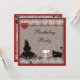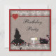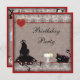 Elegant and cute Alice in Wonderland red and black Birthday tea party invites. On the front of these whimsical Birthday party invitations there is a silhouette of Alice wearing a princess crown sitting down next to, the smiling Cheshire cat and a birthday cake on a stand. There is a pretty jam tart heart decoration in the corner and a stylish and beautiful red hearts and black roses grunge background. On the back of the invites is a drink me bottle, the white rabbit herald silhouette, a pretty tea pot, jam tart heart, pocket watch and a mad hatter hat. Girls and women of all ages will love these cute, classy Birthday party celebration invitations. PLEASE NOTE: All products on Zazzle have flat printed images. All design elements can be resized, moved or removed. All of the text is fully customizable to meet your needs and you can change the font style, colour and size of font if you desire. If you need any assistance customizing your product please contact me through my store and I will be happy to help.