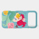 Beautiful illustrated graphic of Ariel hugging Flounder, surrounded by sea shells.