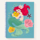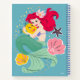 Beautiful illustrated graphic of Ariel hugging Flounder, surrounded by sea shells.