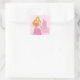 Princess Aurora in her pink ball gown with the castle silhouette in the background.