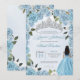 Celebrate the 16th birthday with this gorgeous floral princess theme cinderella blue floral invitation! Featuring beautiful baby and ice blue roses, a glamourous silver tiara and a beautiful girl in her princess gown, this invitation is sure to delight your guests in anticipation. This design is fully customizable. You can edit the text for any occasion, including a Quinceanera, a princess birthday celebration or more. Just choose to customize further. The shop also has this design in other skin tones and themes to perfectly match your guest of honour.