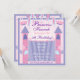 Pretty Princess party invitation with castle towers, banners, crowns and balloons welcome's you to her birthday with the castle gates that include your custom party info. Great for a twin's birthday or baby shower as well! Hand drawn illustration by McBooboo.