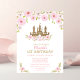This first birthday invitation with gold glitter castle and flowers is perfect for your little wild one!