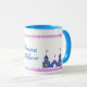 Beautiful fairytale mug in blue, pink, and yellow, with graphics of a fairytale castle. Customize with your own Princesses name for a fun personalized special occasion gift.