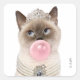 Princess Cat Blowing Bubble Gum Square Sticker