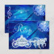Womens' personalized, elegant custom RSVP cards. Beautiful blue double sided woman's rsvp cards with a funky retro disco mirror ball and glamourous printed image rhinestone glitter, sequins bling jewels sparkle royal Princess carriage / coach with crown / tiara and horses on a vibrant royal blue and white lights and sparkles background. There is a beautiful music musical note and high heels stiletto shoe / fairytale glass slipper on the reverse of the cards. Magical, chic, classy, cute, girly, modern rsvp's with trendy, fashionable colours. These groovy, stylish, sophisticated, pretty birthday rsvp cards are decorated / printed on both sides. Perfect rsvp cards for a dinner dance dancing event or any lavish, luxury affair. PLEASE NOTE: All products on Zazzle have flat printed images. If you need any assistance customizing your product please contact me through my store and I will be happy to help.