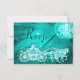 Womens' personalized, elegant custom RSVP cards. Beautiful teal double sided woman's rsvp cards with a funky retro disco mirror ball and glamourous printed image rhinestone glitter, sequins bling jewels sparkle royal Princess carriage / coach with crown / tiara and horses on a vibrant teal turquoise blue and white lights and sparkles background. There is a beautiful music musical note and high heels stiletto shoe / fairytale glass slipper on the reverse of the cards. Magical, chic, classy, cute, girly, modern rsvp's with trendy, fashionable colours. These groovy, stylish, sophisticated, pretty birthday rsvp cards are decorated / printed on both sides. Perfect rsvp cards for a dinner dance dancing event or any lavish, luxury affair. PLEASE NOTE: All products on Zazzle have flat printed images. If you need any assistance customizing your product please contact me through my store and I will be happy to help.