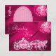 Womens' personalized, elegant custom thank you cards. Beautiful pink double sided woman's thank you cards with a funky retro disco mirror ball and glamourous printed image rhinestone glitter, sequins bling jewels sparkle royal Princess carriage / coach with crown / tiara and horses on a vibrant hot pink and white lights and sparkles background. There is a beautiful music musical note and high heels stiletto shoe / fairytale glass slipper on the reverse of the cards and a beautiful pearls and lace mat for you to write your personal thank you message. Magical, chic, classy, cute, girly, modern thank you cards with trendy, fashionable colours. These groovy, stylish, sophisticated, pretty thank you cards are decorated / printed on both sides. Perfect thank you cards for a dinner dance dancing event or any lavish, luxury affair. Pearls and lace mat by ©Hazel Kinvig-Paul www.design-a-dream.co.uk. PLEASE NOTE: All products on Zazzle have flat printed images. If you need any assistance customizing your product please contact me through my store and I will be happy to help.