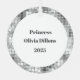 This metal Christmas ornament is shown with a holiday sample photo print and text: Princess, name and date.