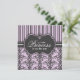 Elegant black and purple damask and stripes makes a lovely design with a French feel that's fit for a little princess. This invitation sets the stage for the darling bundle of joy and her mom to be celebrated at a chic baby shower.