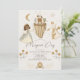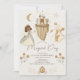 This boho and cute "Magical Day" girl's 1st/first birthday invitation features a dark skin princess with a wand, dragon with a crown, flying castle, and carriage in earthy tones. The reverse side features a light grey beige background with fairytale patterns. Personalize it for your needs. You can find matching products at my store.