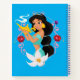 Princess Jasmine holding the magic lamp, borderd by an ornate pink frame with a lotus and jewels.