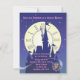 Princess Royal Birthday Party Invitation with a Castle and moon with clock face inside the moon.