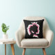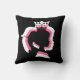 A black throw pillow with white,black, and pink layered princess silhouette designs.