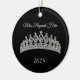Christmas ceramic ornament is shown with a sparkling silver crystal tiara with white text on a black color background.