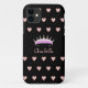 Princess Tiara Crown & Pink Hearts on Black Case-Mate iPhone Case
