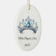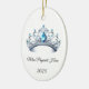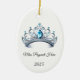 This ceramic ornament is shown with a sparkling crystal tiara with black text on a white background.