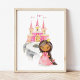 Ajoutez la touche finale à la nurserie de votre bébé ou à la chambre de votre enfant avec cette superbe impression d'art! Le design présente une princesse afro-américaine devant le château rose.