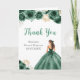 Ce carte de remerciements de sweet sixteen présente une belle princesse dans une robe de bal vert foncé aux arrangements floraux. C'est parfait pour une fête d'anniversaire en sweet sixteen.