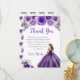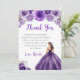 Ce carte de remerciements de sweet sixteen présente une belle princesse dans une robe violette foncée aux arrangements floraux. C'est parfait pour une fête d'anniversaire en sweet sixteen.