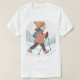 Print for white T-shirt. For men and women. Girl doing Nordic walking in winter.