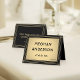 Compliment black and gold party decorations with elegant personalized name and table number printable place cards. To use as escort cards, set on a table near the entrance for guests to pick up and take to their seats, eliminating the need for a separate seating chart. The meal choice, event title and date are simple to customize or delete. The colors and font styles are easy to change with the Zazzle Design Editor tool. The modern black and gold downloadable design features a faux foil background, a stylish striped border and classic vintage art deco typography. These elegant place cards add a unique customized touch to a celebration with a dinner reception or luncheon. Please note that these cards are not pre-folded and the gold is printed gradient color with slightly darker edges, not metallic foil.