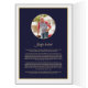 Very nicely done exactly what it looks like doesn't need a frame to stand it up and right size without overbearing the items on the table. Exactly like the picture turn out very clear and sharp