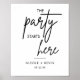 The Party starts here modern wedding welcome sign features calligraphy signature font and the Bride and Groom's name along with wedding date. Click "design tool" button to customize further. Printable wedding signs are the perfect way to print your wedding signs at home. Simply download the size you need and print at your local office supply store or at home.