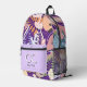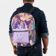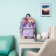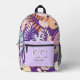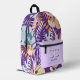 Abstract Leaves pattern on purple base. Solid grey colour on front pocket with personalize "Initial", "Name", and "Text".