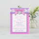 This pretty pink, purple and white floral lace umbrella pattern baby shower invitation has a PRINTED ON pink satin bow with a PRINTED FAUX silver charm with the words "Oh Baby!" on it. All the template text can be customized how you like. If you need any other matching items, please email niteowlstudio@gmail.com.