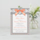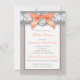 This pretty orange, grey and white floral lace umbrella pattern baby shower invitation has a PRINTED ON orange satin bow with a PRINTED FAUX silver charm with the words "Oh Baby!" on it. All the template text can be customized how you like. If you need any other matching items, please email niteowlstudio@gmail.com.