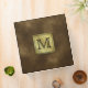 The design on this item is a flat printed image. A picture, not a raised up or textured design. This picture includes, an image of a brown leather print pattern, an image of a non-metallic gold colour centre, and a black initial letter. A stylish design, the background pattern is an image of brown leather in a vintage style, in nice dark brown, chocolate brown and non-metallic golden brown colours. It has a classy old fashioned look. This item has a customizable black monogram letter in a stylish font, the letter can be changed to create a personalized design. The pattern and design is a picture, an image on the surface of this item. It is not a bumpy texture.