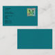 Printed Custom Monogram Image on Teal Pattern. Business Card