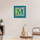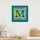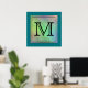 Printed Custom Monogram Image on Teal Pattern. Poster