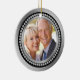 25th Wedding Anniversary photo ornament in black and silver colours with printed diamonds. Customize with your own photo and text.