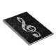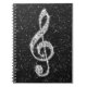 Carnet élégant et fascinant. Beau, argent à la mode et diamants d'image imprimée d'éblouissement bling la note musicale de bijoux sur un arrière - plan scintillant noir chic d'image imprimée de parties scintillantes. Un cadeau mignon, chic, à la mode, élégant, joli pour elle ou tout mélomane.