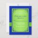 This elegant and romantic lime green and royal blue floral wedding R.S.V.P. card has a PRINTED ribbon and bow with a pair of PRINTED diamond jewels and FAUX (simulated) glitter joined hearts brooch on it that matches the wedding invitations shown below. The text and type of paper is customizable. ALSO, if you re-size the invitation, or if you change fonts, or the size of the font, some of the design and/or text may get cut-off. Everything will print as you see it on your monitor. I will not see your invitation, and Zazzle will NOT correct anything (typos, mis-alignment etc.). If you need help with this invitation, please email me BEFORE you place your order. If you require any matching items, or if you would like it in another colour combination, or formatted to have menu choices, email niteowlstudio@gmail.com with your request.
