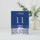 This royal blue and silver grey floral table number postcard has a PRINTED ribbon and bow and a pair of PRINTED diamond jewel and FAUX glitter (simulated) joined hearts on it that matches the wedding invitations shown below. ****You MUST change the number 11 to each number that you need, add it to your cart, and then come back and repeat the process with each number that you need. Quantity discounts may apply once you add all the items to your cart. If you have any questions, email niteowlstudio@gmail.com.