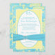 This beautiful aqua blue, yellow, and white vintage floral damask surprise sixty-fifth birthday party invitation has a PRINTED ribbon with a PRINTED crystal brooch on it with a grungy damask pattern background with pale yellow peony or rose type flowers on it. There is a text box on the back to add any extra text you may want, or you can remove the back image and text and have the distressed look pink and yellow floral damask as the back instead. It would be perfect for a milestone birthday party, or for a vintage or Victorian style party or event. You can remove the stylized "65th" to adapt the invitation to your own needs. ***PLEASE NOTE there are no raised elements on this invitation. Everything is printed flat. The text and paper is all customizable. It is shown here on basic paper. I would NOT use metallic gold or silver as they will discolour the invitation. The linen paper will add a texture of thin lines that you may not want, and it is a lightweight paper that will cool down the design. The felt paper is an cream colour that will affect all the white elements in the design. ***PLEASE NOTE that if you change the font or size of the font, it may alter how your invitation prints. It will print the way you see it on your monitor, so if you have alignment issues, or sizing problems, please contact me for help. I will not see your invitation once you order it, and Zazzle will NOT edit anything (typos, alignment, etc.). If you require assistance or would like any other matching items, please email your request to niteowlstudio@gmail.com.