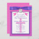 Invite all your friends and family to an open house in honour of your daughter's first Holy Communion. This pink, white and purple polka dot invitation has a PRINTED ON purple ribbon with bow on it, along with a PRINTED on FAUX engraved silver charm with a wine glass or chalice on it, and two peace doves with a faded pink Cross in the background. Part of the design is a FAUX basket-weave pattern. The paper and all text is customizable. If you require any other items in this design style, please email your request to niteowlstudio@gmail.com.