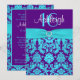 Add some glitz and glam to your Sweet 16 party, Quinceanera, or Bat Mitzvah with this chic purple, turquoise blue and white damask sweet sixteen birthday invitation with a PRINTED aqua blue satin ribbon and a PRINTED diamond jewel brooch on it. If you require any matching items in this design, or if you need help customizing it with your info, please email niteowlstudio@gmail.com. ****PLEASE NOTE that everything will print as it appears on your monitor. I will not see your invitation once you order it and Zazzle will not edit anything.