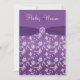 This purple and silver grey floral vines wedding invitation on basic paper is personalized with the names of the bride and groom and has a PRINTED ON purple ribbon and a PRINTED ON gamethyst gemstone and diamond jewel brooch on it. If you require any other matching items in this design, please email your request to niteowlstudio@gmail.com. Existing matching items are shown below.