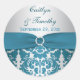 PRINTED RIBBON Silver, Teal Damask Wedding Sticker