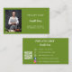 A basil green coloured background. Personalize and add your photo, title, business name/name and text, contact information on front. White text.