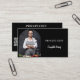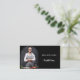 A classic black background. Personalize and add your title, business name/name and text on front. White text. An arch shaped photo frame.